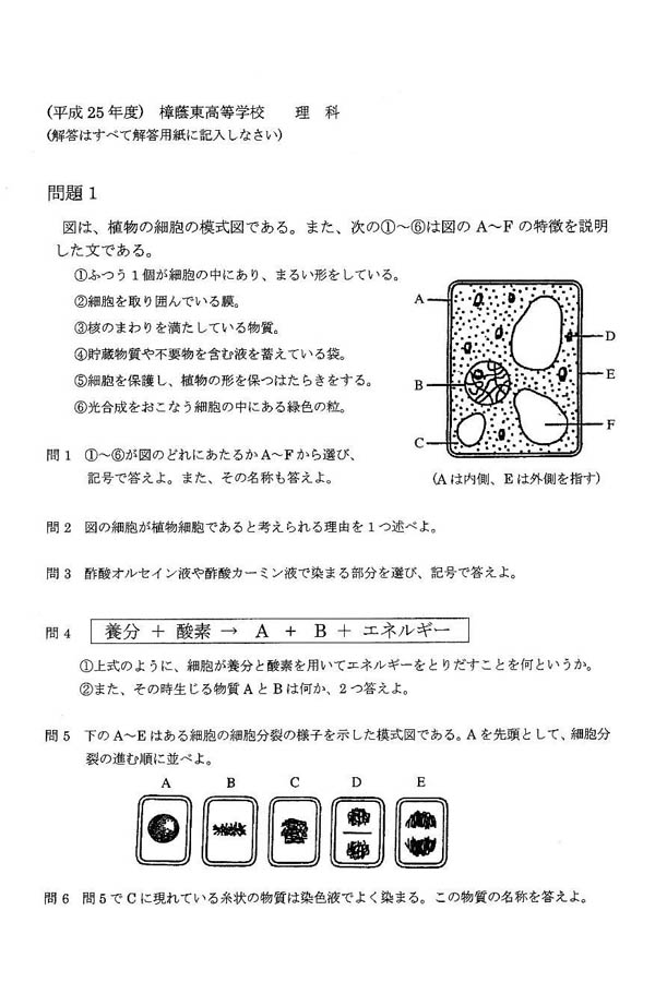 平成25年度入試過去問題(理科 問題)(1ページ目)|アナン学園高等学校の入試過去問