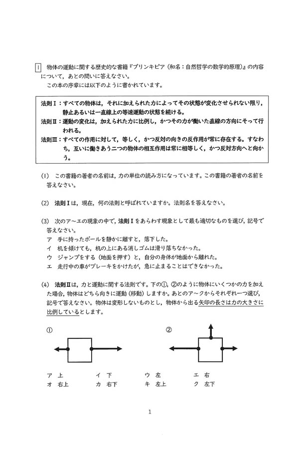 2024年度入試過去問題(理科 問題)(1ページ目)|箕面自由学園高等学校の入試過去問