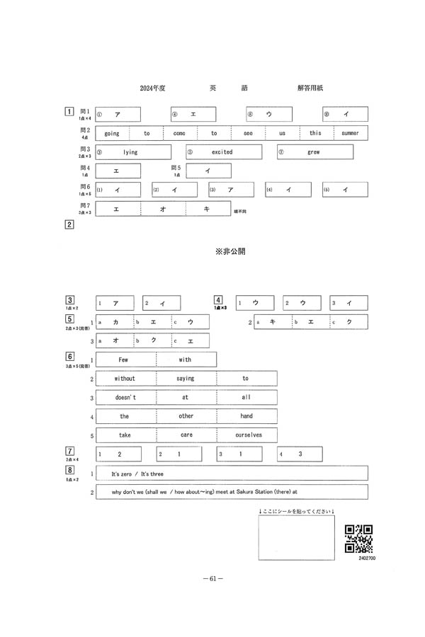 2024年度入試過去問題(英語 解答)(1ページ目)|関西大倉高等学校の入試過去問