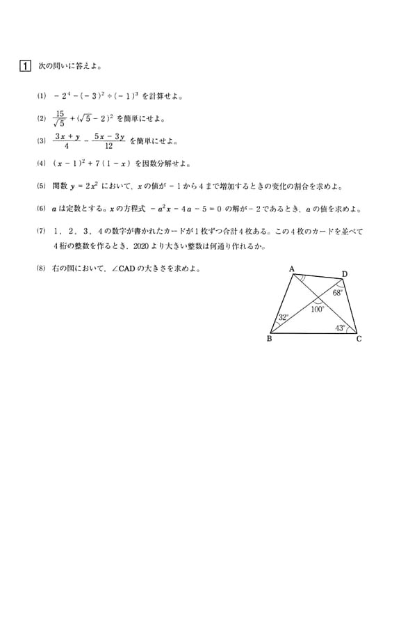入試過去問(問題)(1ページ目)|関西大倉高等学校の入試過去問
