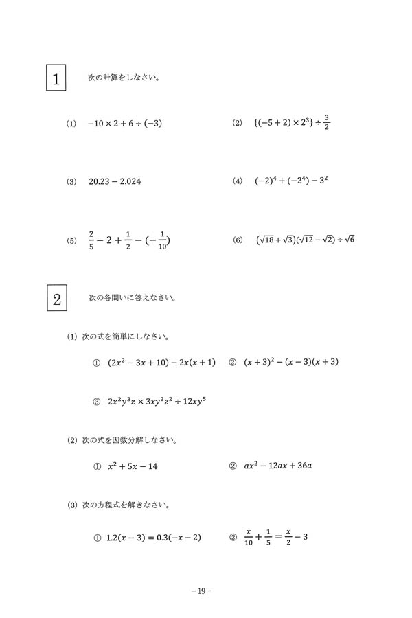 令和6年度入試過去問題(数学 問題)(1ページ目)|東大阪大学敬愛高等学校の入試過去問
