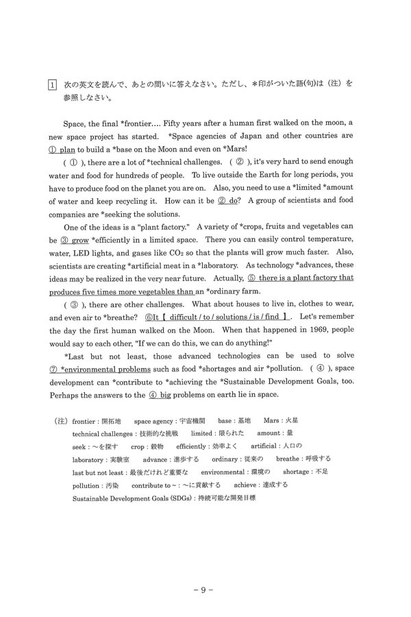 令和6年度入試過去問題(英語 問題)(1ページ目)|東大阪大学敬愛高等学校の入試過去問