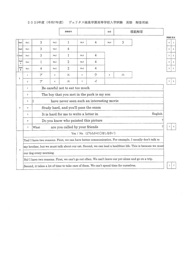 入試過去問(解答)(1ページ目)|ヴェリタス城星学園高等学校の入試過去問