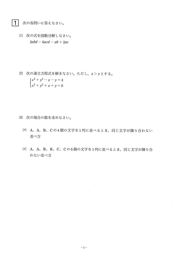 入試過去問(問題)(1ページ目)|清風南海高等学校の入試過去問