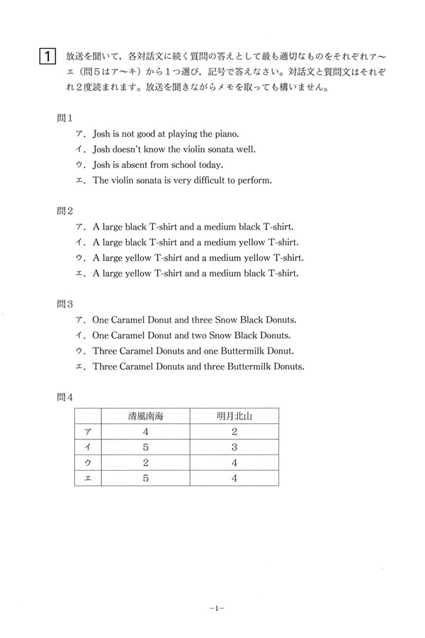 入試過去問(問題)(1ページ目)|清風南海高等学校の入試過去問