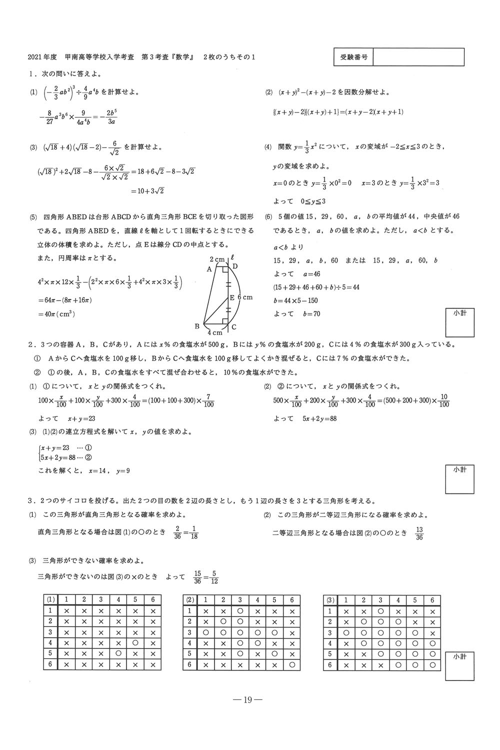 入試過去問(解答)(1ページ目)|甲南高等学校の入試過去問