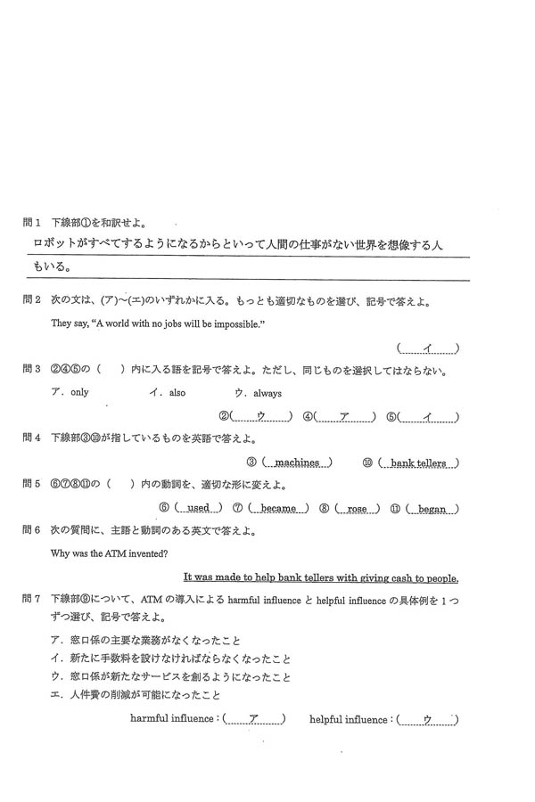 2023年度入試過去問題(英語 解答)(1ページ目)|甲南高等学校の入試過去問
