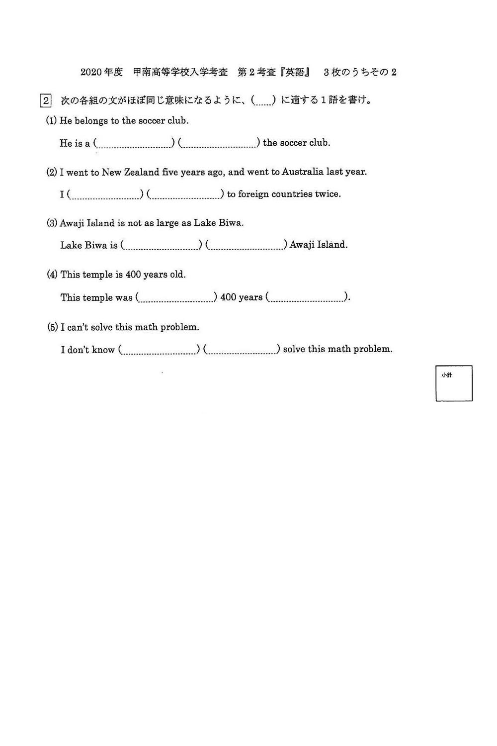 入試過去問(問題)(1ページ目)|甲南高等学校の入試過去問
