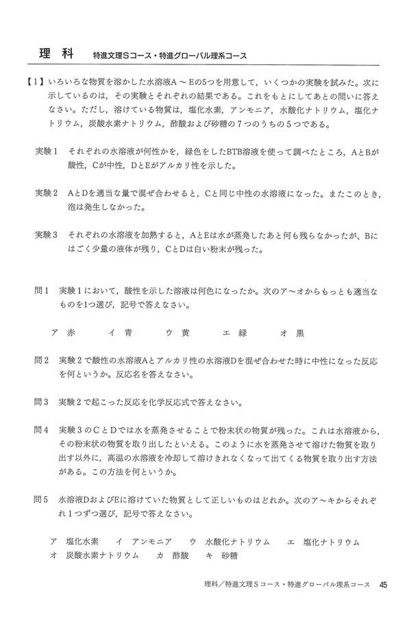 令和6年度入試過去問題 特進文理Sコース・特進グローバル理系コース(理科 問題)(1ページ目)|神戸龍谷高等学校の入試過去問