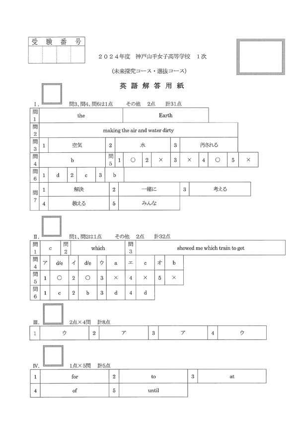 2024年度入試過去問題<未来探究コース・選抜コース>(英語 解答)(1ページ目)|神戸山手グローバル高等学校の入試過去問