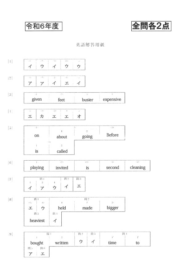 令和6年度入試過去問題(英語 解答)(1ページ目)|育英高等学校の入試過去問
