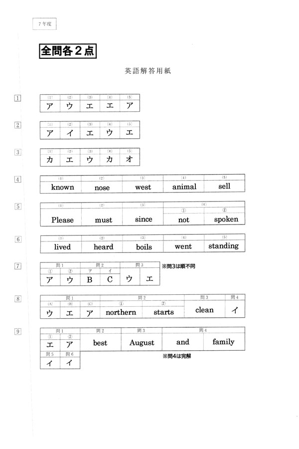 令和7年度入試過去問題(英語 解答)(1ページ目)|育英高等学校の入試過去問