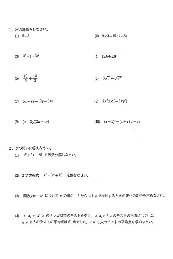令和5年度入試過去問題(数学 問題)(1ページ目)|兵庫大学附属須磨ノ浦高等学校の入試過去問