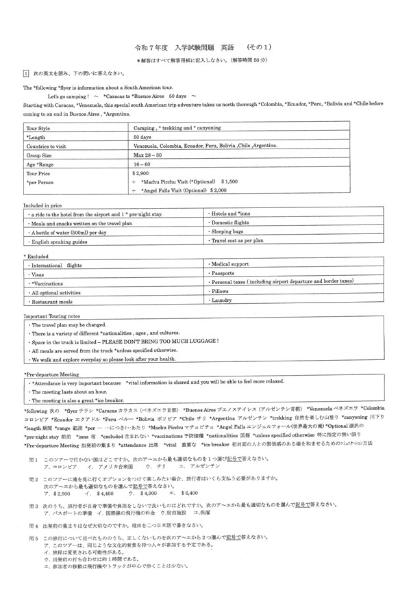 令和7年度入試過去問題(英語 問題)(1ページ目)|兵庫大学附属須磨ノ浦高等学校の入試過去問