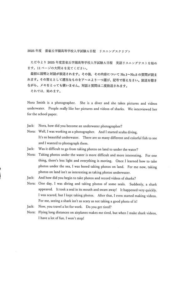入試過去問(問題)(1ページ目)|雲雀丘学園高等学校の入試過去問