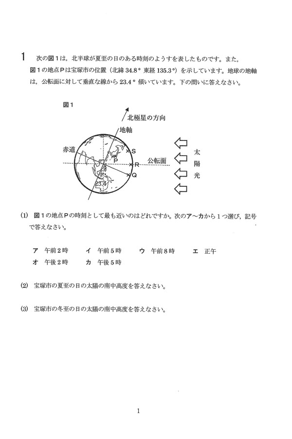 2025年度入試過去問題(A日程)(理科 問題)(1ページ目)|雲雀丘学園高等学校の入試過去問