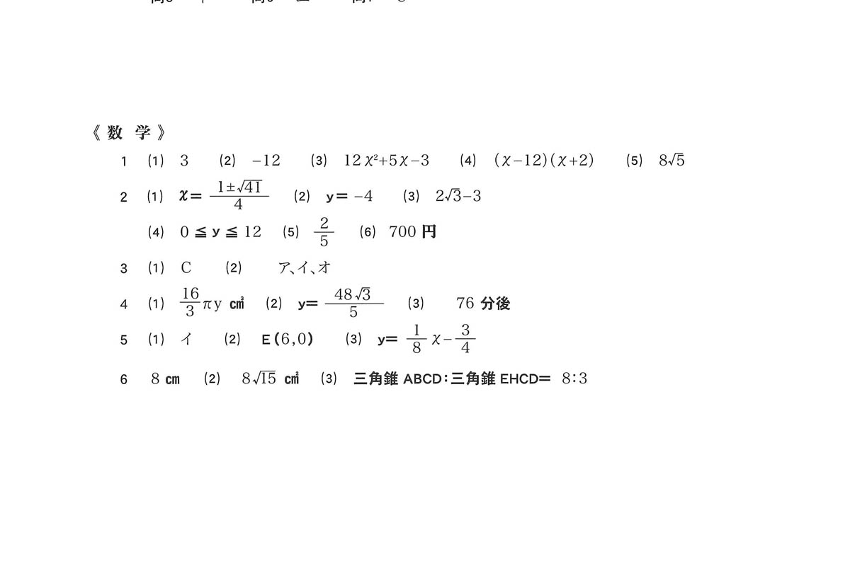 2024年度入試過去問題 特別進学コース(数学 解答)(1ページ目)|園田学園高等学校の入試過去問