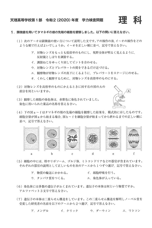 入試過去問(問題)(1ページ目)|天理高等学校の入試過去問