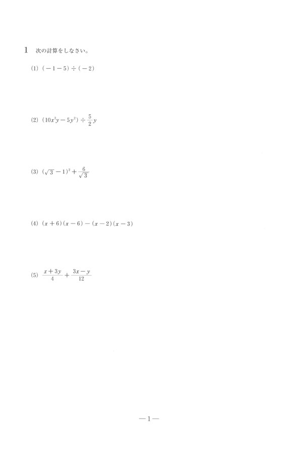 令和7年度入試過去問題(数学 問題)(1ページ目)|智辯学園高等学校の入試過去問
