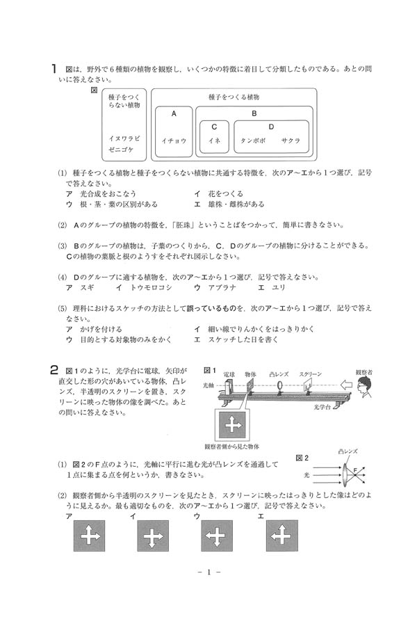 令和6年度入試過去問題(理科 問題)(1ページ目)|高岡向陵高等学校の入試過去問