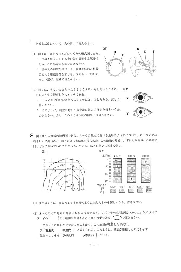 平成27年度入試過去問題(理科 問題)(1ページ目)|荒井学園新川高等学校の入試過去問