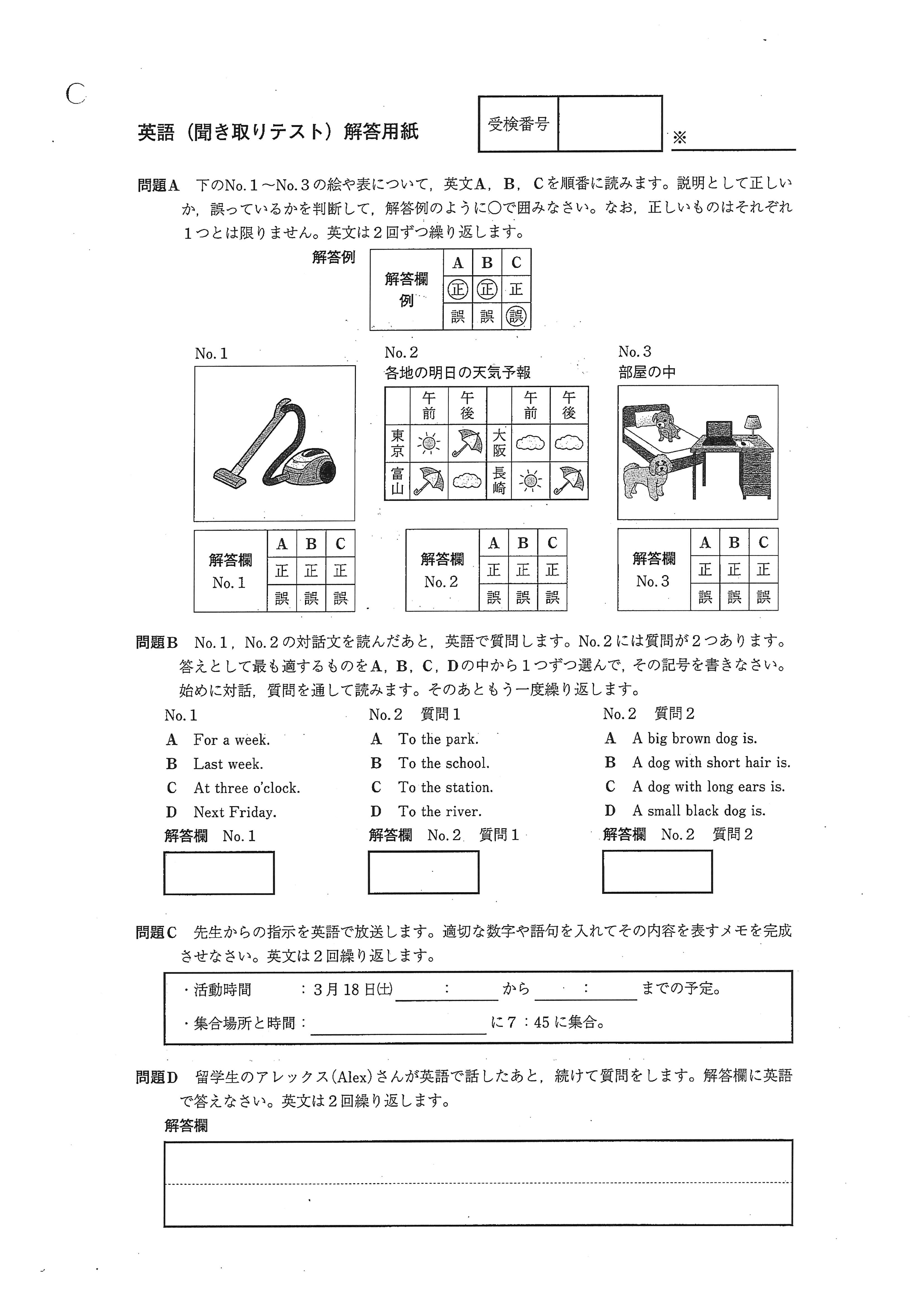平成29年度入試過去問題(英語 問題)(1ページ目)|荒井学園新川高等学校の入試過去問