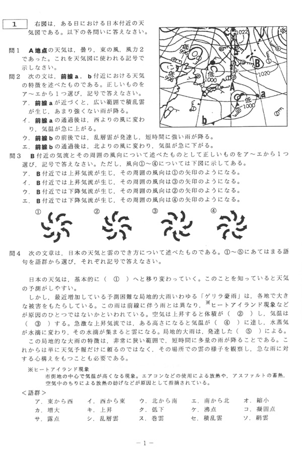 平成22年度入試過去問題 1次(理科 問題)(1ページ目)|金沢高等学校の入試過去問