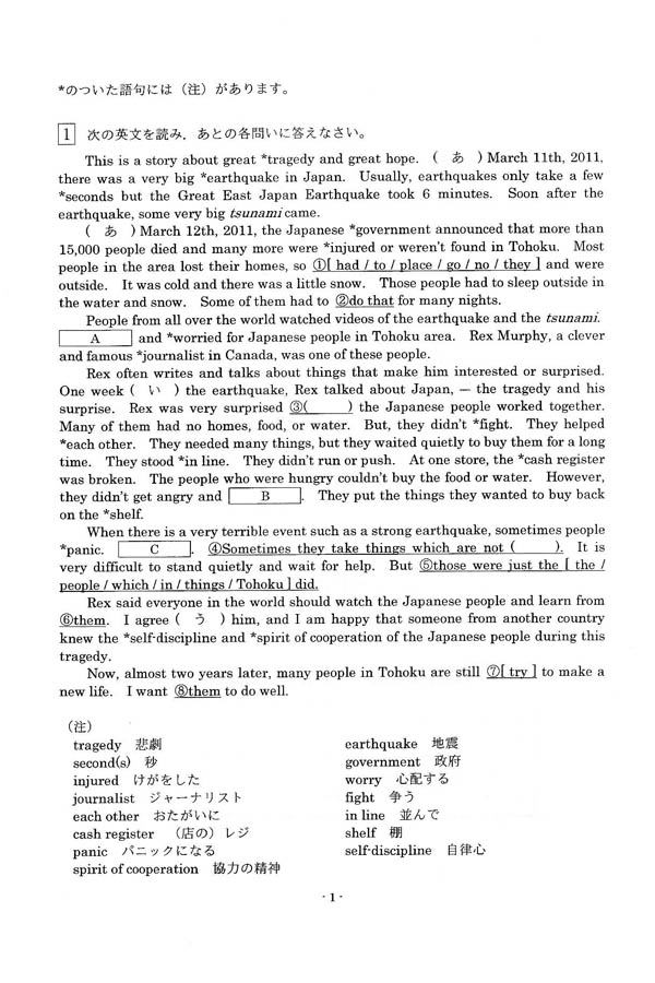 入試過去問(問題)(1ページ目)|金沢高等学校の入試過去問
