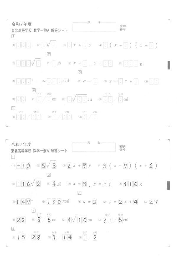 入試過去問(解答)(1ページ目)|東北高等学校の入試過去問
