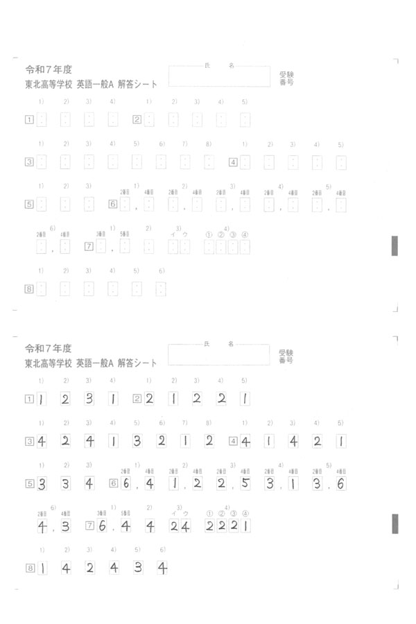 令和7年度入試過去問題(英語 解答)(1ページ目)|東北高等学校の入試過去問