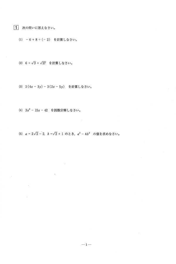 令和7年度入試過去問題(数学 問題)(1ページ目)|東北高等学校の入試過去問