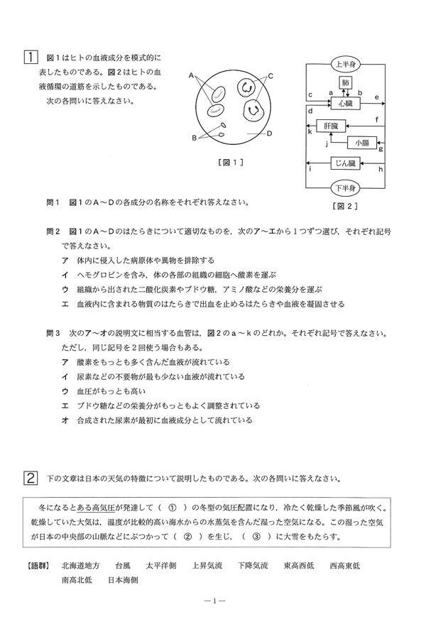 入試過去問(問題)(1ページ目)|米沢中央高等学校の入試過去問