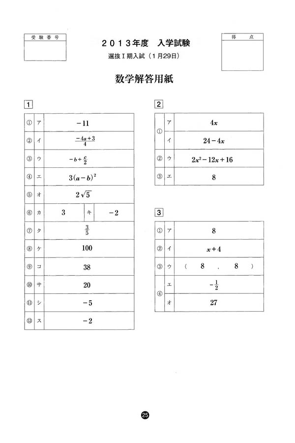 平成25年度入試過去問題 1日目 普通科 その他のコース[1/1]