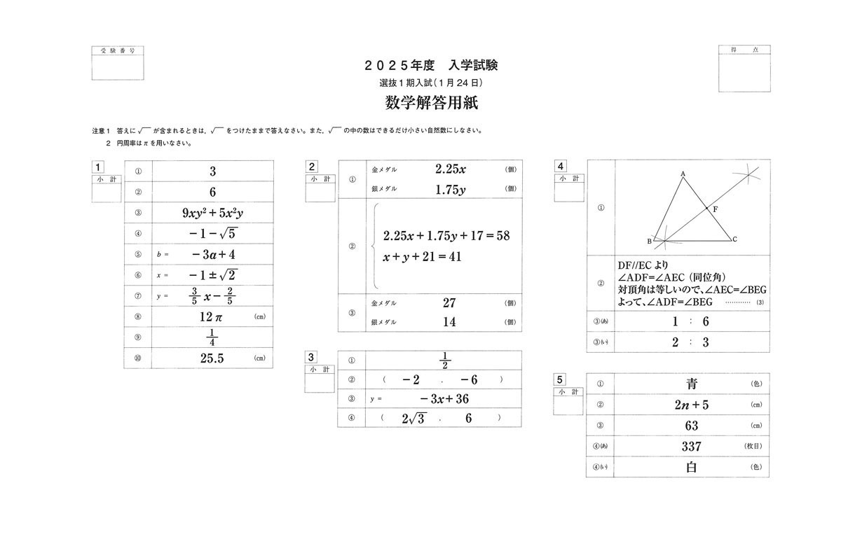 2025年度入試過去問題 選抜1期入試(1月24日実施)[1/1]