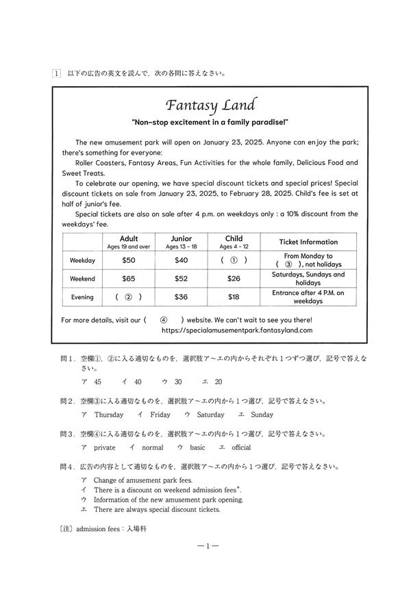 2025年度入試過去問題 選抜1期入試(1月23日実施)[1/6]