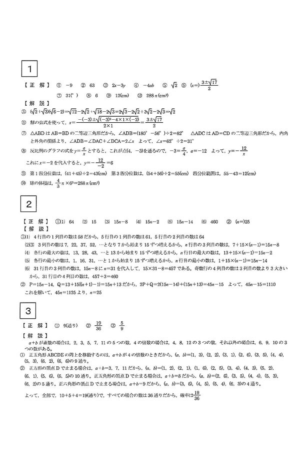 入試過去問(解答)(1ページ目)|岡山学芸館高等学校の入試過去問