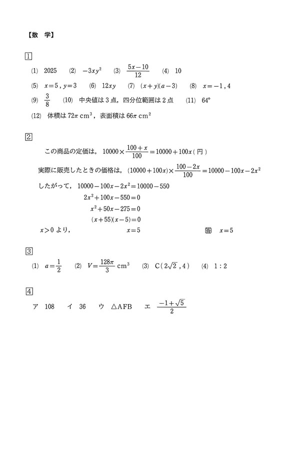 入試過去問(解答)(1ページ目)|金光学園高等学校の入試過去問