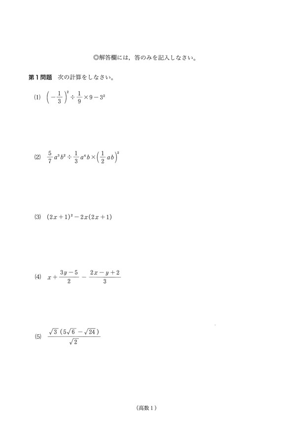令和7年度入試過去問題(一般)(数学 問題)(1ページ目)|崇徳高等学校の入試過去問
