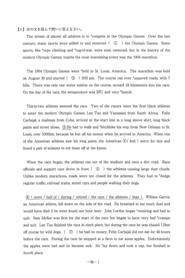 2020年度入試過去問題 一般入試 一般コース(英語 問題)(1ページ目)|広島県瀬戸内高等学校の入試過去問