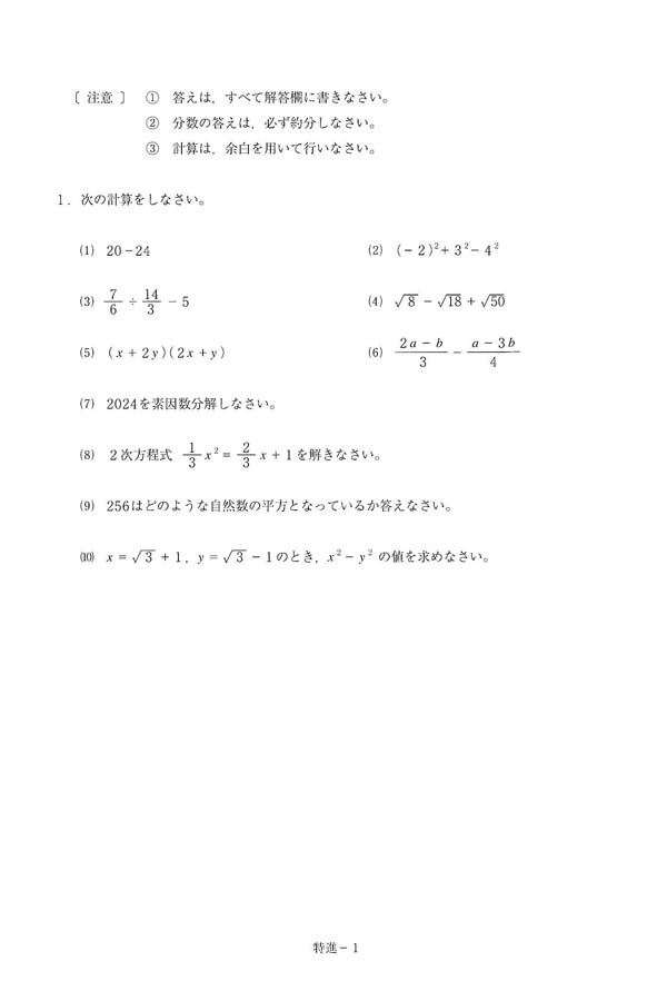 令和6年度入試過去問題 一般 特別進学コース[1/7]