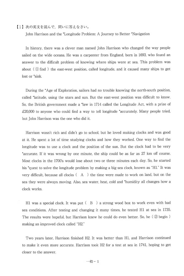 令和6年度入試過去問題 一般 一般コース[1/8]