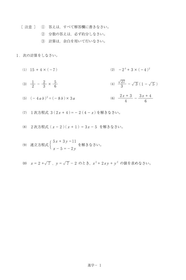 令和7年度入試過去問題 推薦(進学コース)[1/6]