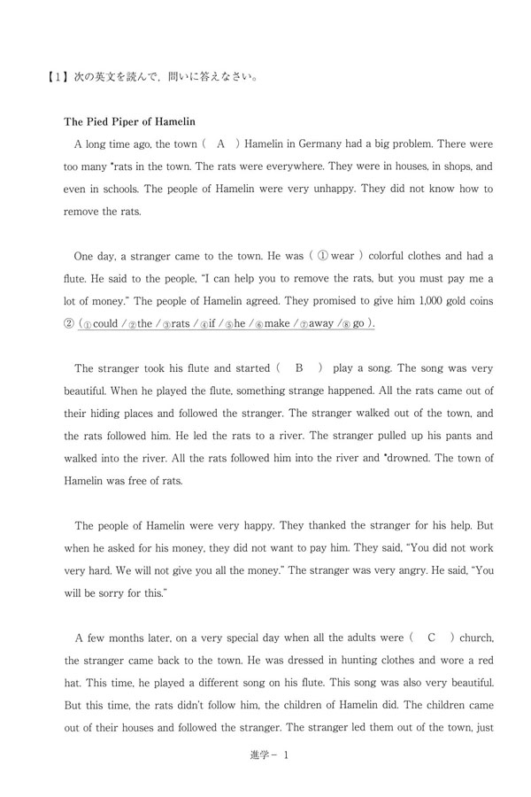 入試過去問(問題)(1ページ目)|広島県瀬戸内高等学校の入試過去問