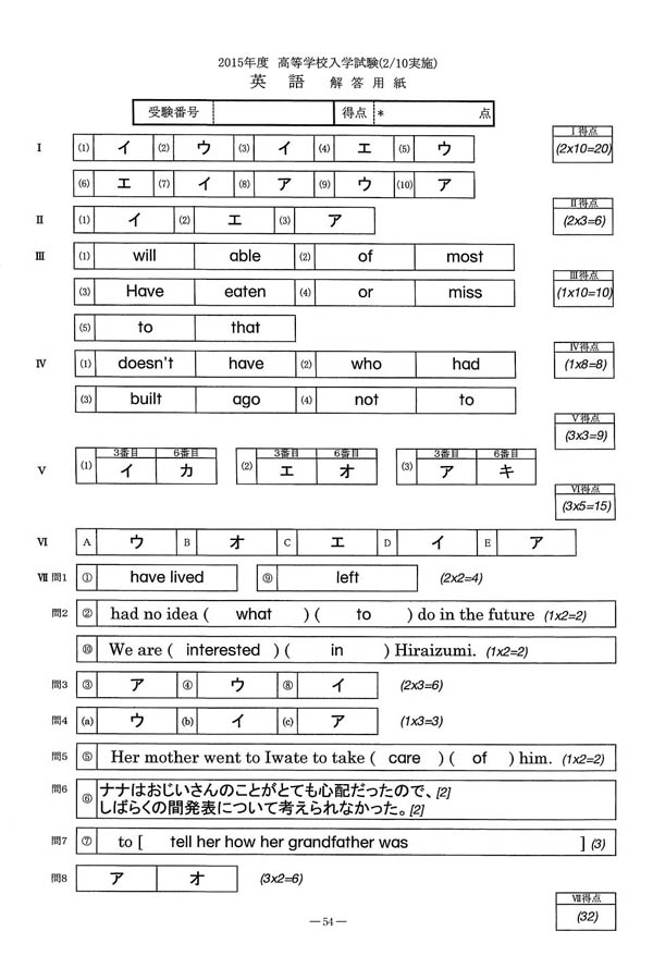平成27年度入試過去問題 2月10日(英語 解答)(1ページ目)|東京家政学院高等学校の入試過去問