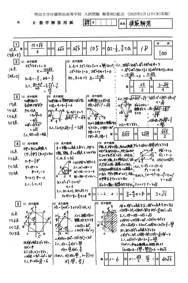 入試過去問(解答)(1ページ目)|明治大学付属明治高等学校の入試過去問