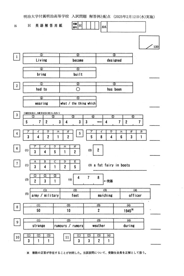 令和7年度入試過去問題(英語 解答)(1ページ目)|明治大学付属明治高等学校の入試過去問