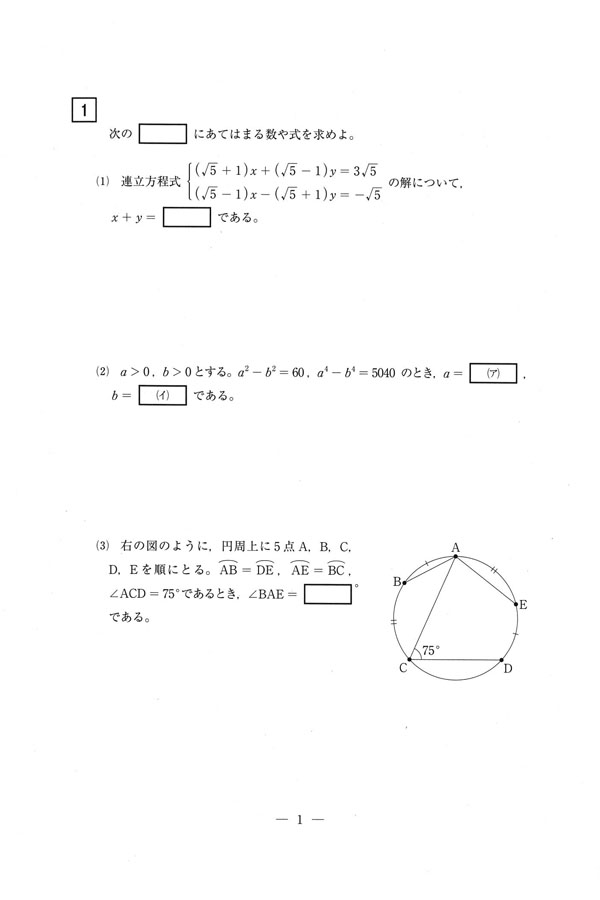 令和7年度入試過去問題(数学 問題)(1ページ目)|明治大学付属明治高等学校の入試過去問