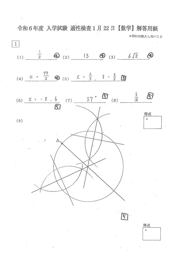 令和6年度入試過去問題 適性検査 (数学 解答)(1ページ目)|保善高等学校の入試過去問