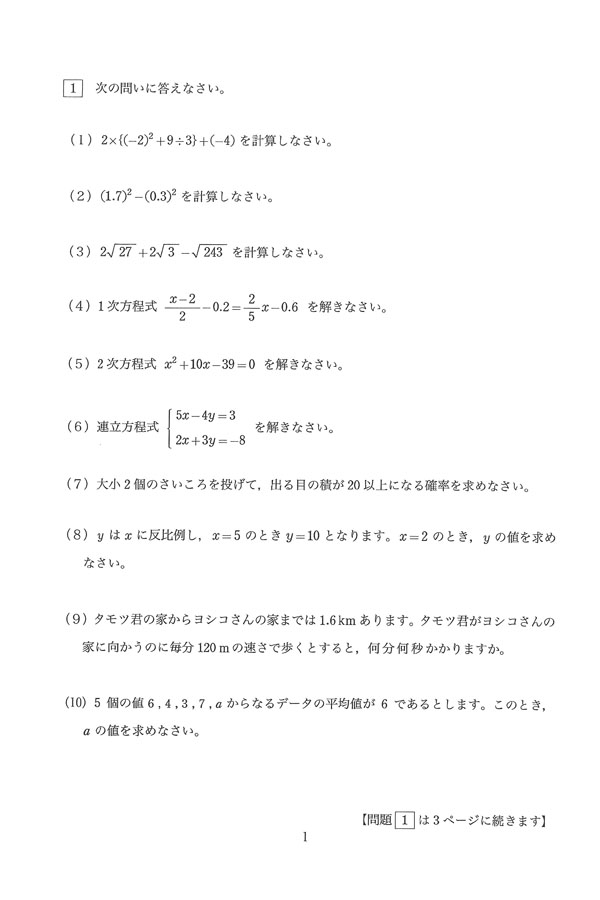 令和7年度入試過去問題 2月10日(数学 問題)(1ページ目)|保善高等学校の入試過去問