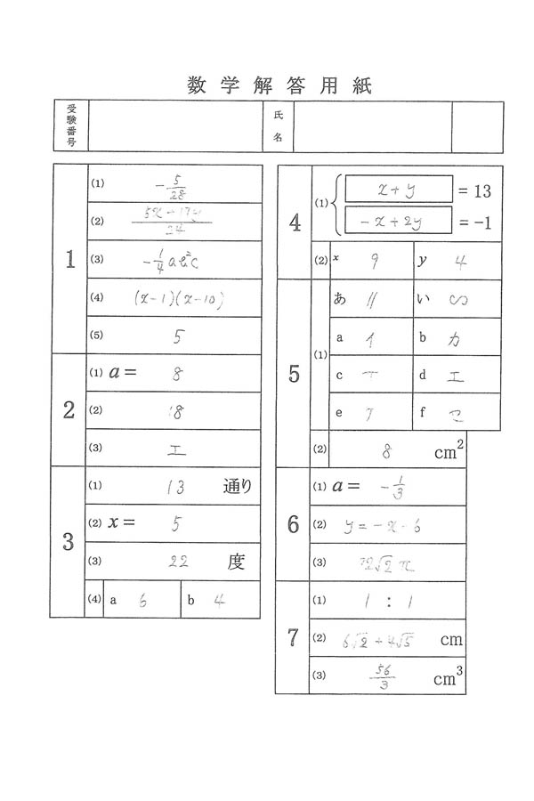 2024年度入試過去問題  一般(1)(数学 解答)(1ページ目)|目白研心高等学校の入試過去問